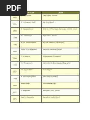 List Of Sahitya Akademi Award Winners For Tamil Wikipedia The Free Encyclopedia - 71%(28)71% found this document useful (28 votes).